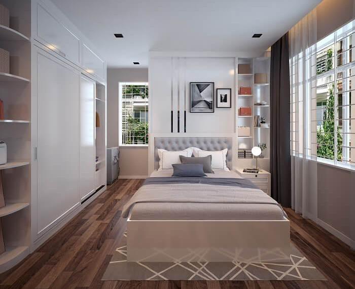 • Sử dụng màu gỗ và màu sáng: Ví dụ màu trắng