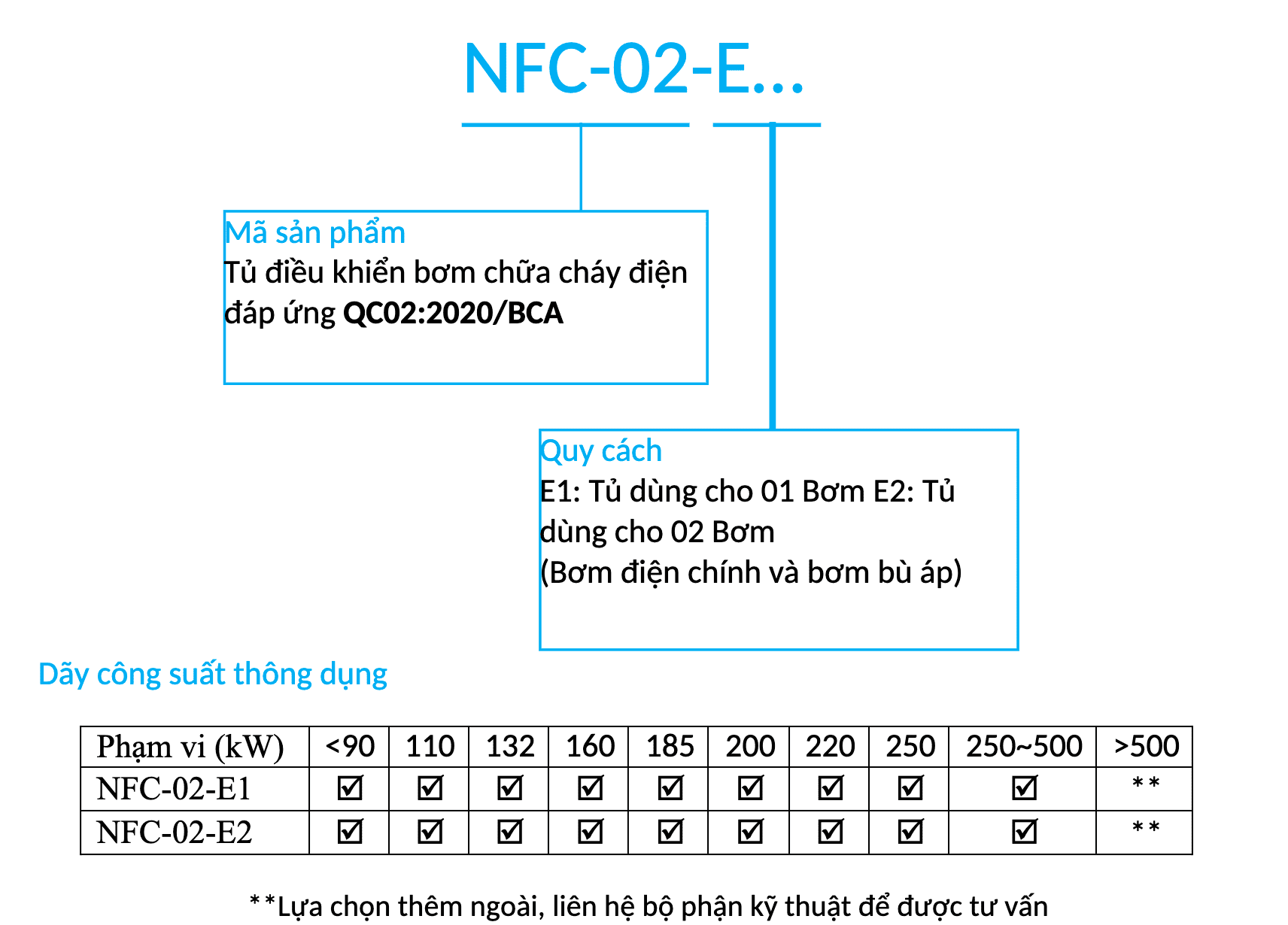 Khởi động khẩn cấp | Tích hợp công tắc hành trình Khởi động trực tiếp không thông qua mạch điều khiển Kích hoạt bằng cách kéo tay giật khẩn cấp hoặc chuyển ISOLATOR khởi động khẩn cấp về trạng thái ON đối với các bơm có công suất lớn |