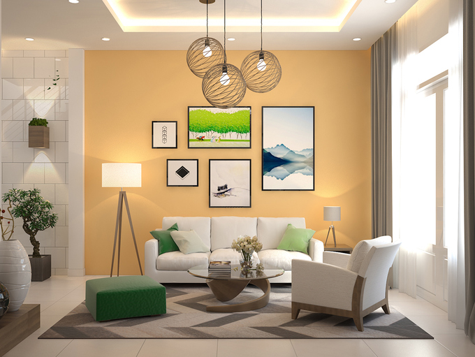 Các hình khối bên ngoài ngôi nhà thiết kế theo mảng lớn nhưng kết hợp hài hòa làm cho ngôi nhà trông rộng lớn mà không quá thô, ngược lại rất thanh thoát và nhẹ nhàng.Không gian bên trong nhà đáp ứng đầy đủ không gian sinh hoạt của một gia đình Việt Nam, bao gồm phòng khách, phòng ngủ, nhà vệ sinh, nhà bếp, phòng sinh hoạt gia đình và phòng làm việc. Tất cả được phân chia hợp lý để phù hợp với diện tích vừa phải. Phòng khách được bố trí vị trí trung tâm có không gian lớn.